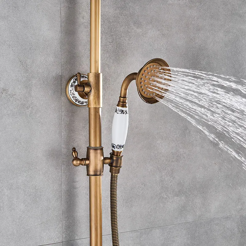 Античная латунь Ванная комната душевой кран Набор настенного монтажа двойная
