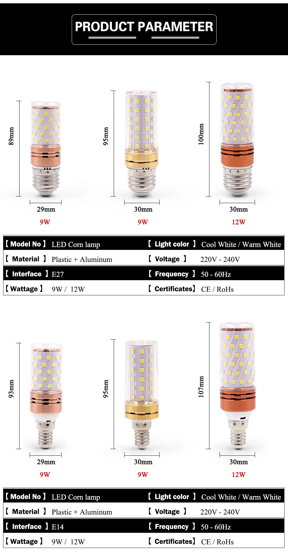 EnwYe E27 светодиодная лампа E14 Светодиодная лампа истинная мощность 9 Вт 12 Вт SMD2835 220 В кукурузная лампа люстра Свеча Светодиодная лампа для украшения дома
