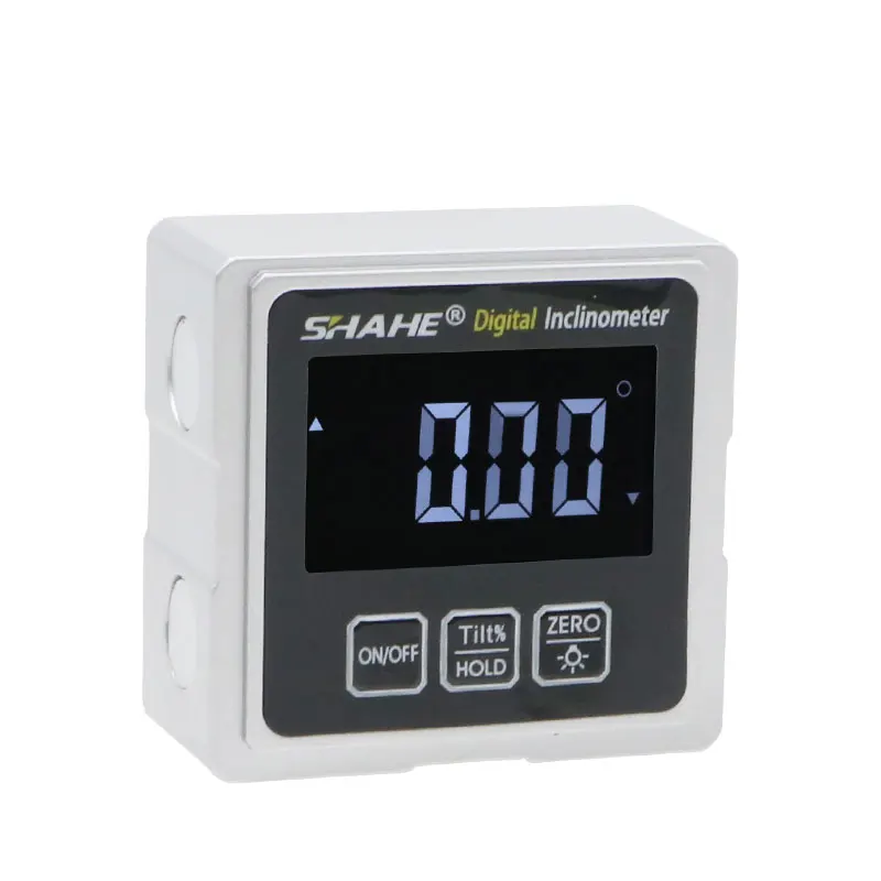 Особенности: 1. Металлический инклинометр 2. Обмена относительными/абсолютными измерениями в любом положении 3. Автоматическое отключение питания за 5 минут. 4. Портативный размер, удобно для совместной работы с другими измерительными инструментами и увеличения диапазона измерений. Спецификация: Диапазон измерения: 4*90 ° Разрешение: 0,05 ° Точность: ± 0,2 ° Повторяемость: 0,1 ° Батарея: AAA * 2 батареи (не входят в комплект) Рабочая температура: 0 °C-40 °C Размеры: 57*57*30,5 м Абсолютное нулевое измерение на основе горизонтальной поверхности Вес нетто: 0,2 кг С подсветкой Магниты: 3-боковых на магнитах