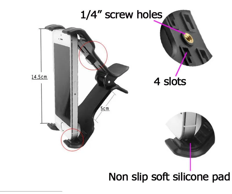 Посылка включает в себя: 1 шт. двойное крепление. Уникальный дизайн: двойное соединение-4 слота с пряжкой + 1/4 "-20 резьбовых винтов -- Установите на автомобильный держатель/держатель скутера/селфи-палка монопод штативы и т. Д ..