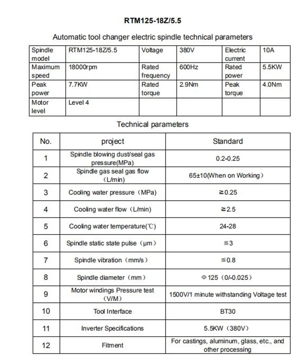 1x5,5 кВт/6.5квт ATC шпиндель с водяным охлаждением