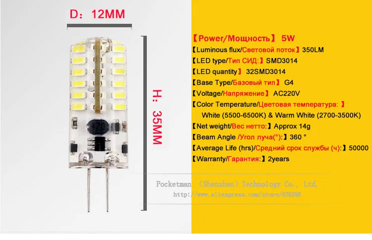 Примечание: Есть три виды в G4 лампа "Кукуруза" от напряжения (DC12V, AC/DC12V, AC220V ), Пожалуйста, убедитесь, что розетка лампы использует напряжение.100% Новый бренд