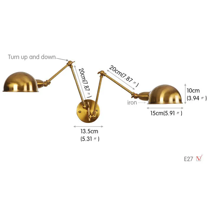 Art Deconew Бронзовый Ретро настенный светильник с железной рукояткой двойной проходной гостиной Золотой лампе industrielle винтажный настенный светильник