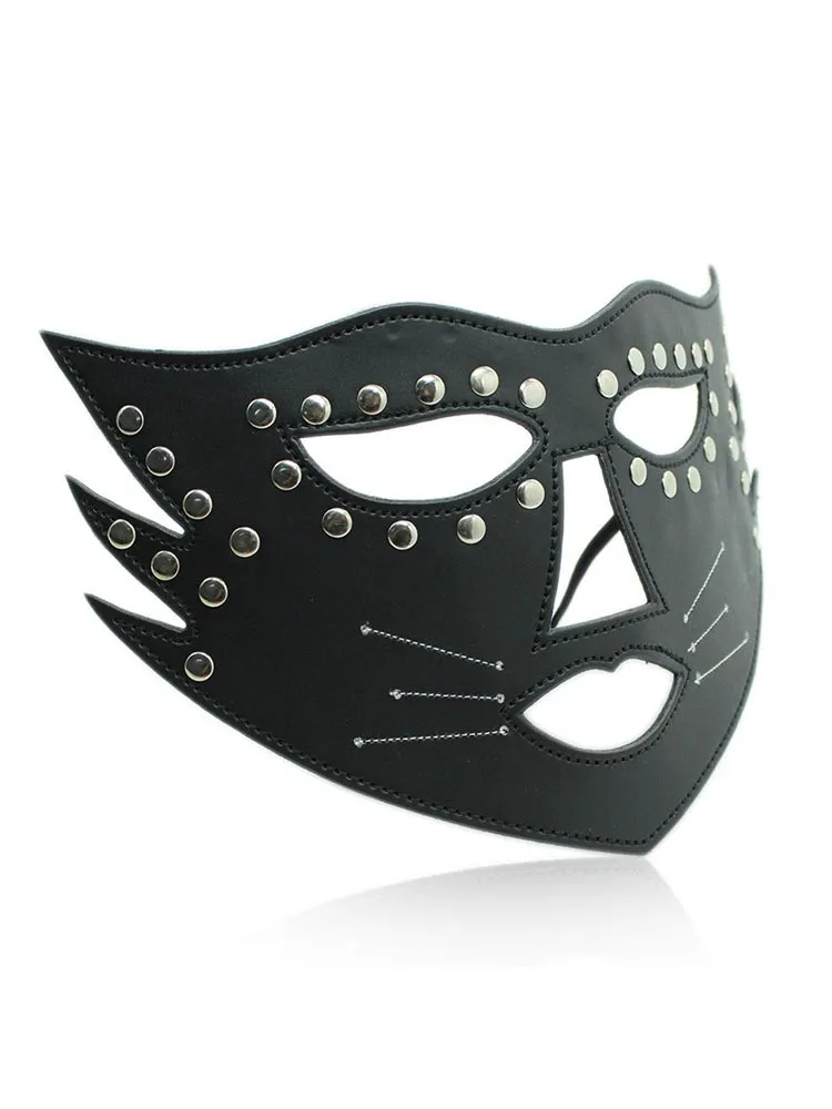 Женская сексуальная маска из искусственной кожи с шипами, необычный костюм, вечерние накладки на глаза, черный цвет Неброская доставка 100% Новый бренд Размер: свободный размер подходит для большинства головок Материал: из искусственной кожи Цвет: черный