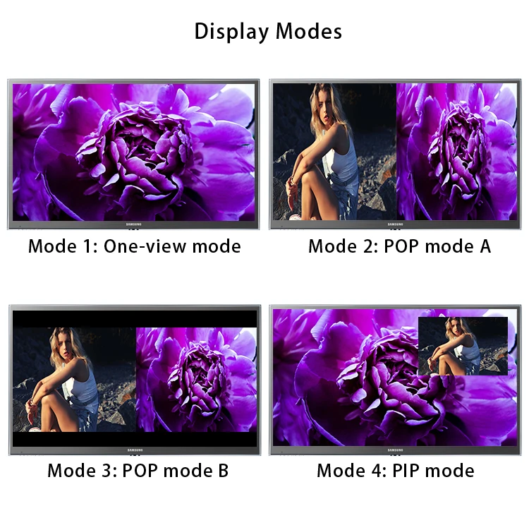 Поддержка нескольких режимов отображения, таких как режим one-view, PIP (изображение на картинке), изображение за пределами изображения... и т. Д.