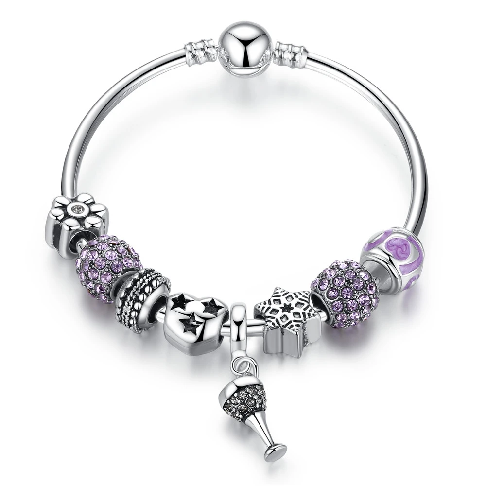 Лидер продаж лучший подарок 19 см Серебристый браслет светло винограда бисер