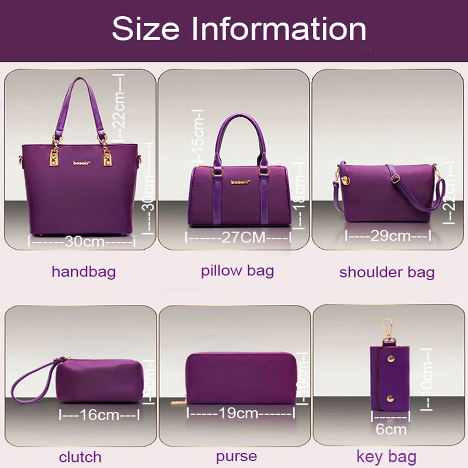 6 шт., женские сумки, набор, Оксфорд, водонепроницаемая сумка через плечо, повседневная женская сумка-мессенджер, большая Повседневная Сумка-клатч, ручная сумка, Bolsa Feminino, Сумка с верхней ручкой, пляжная сумка для покупок