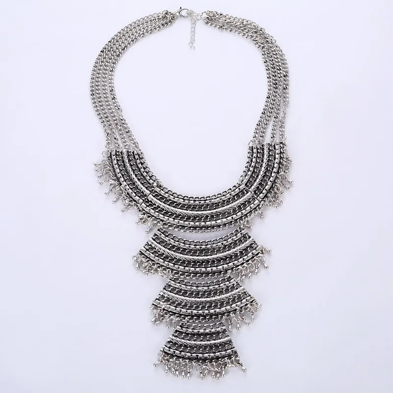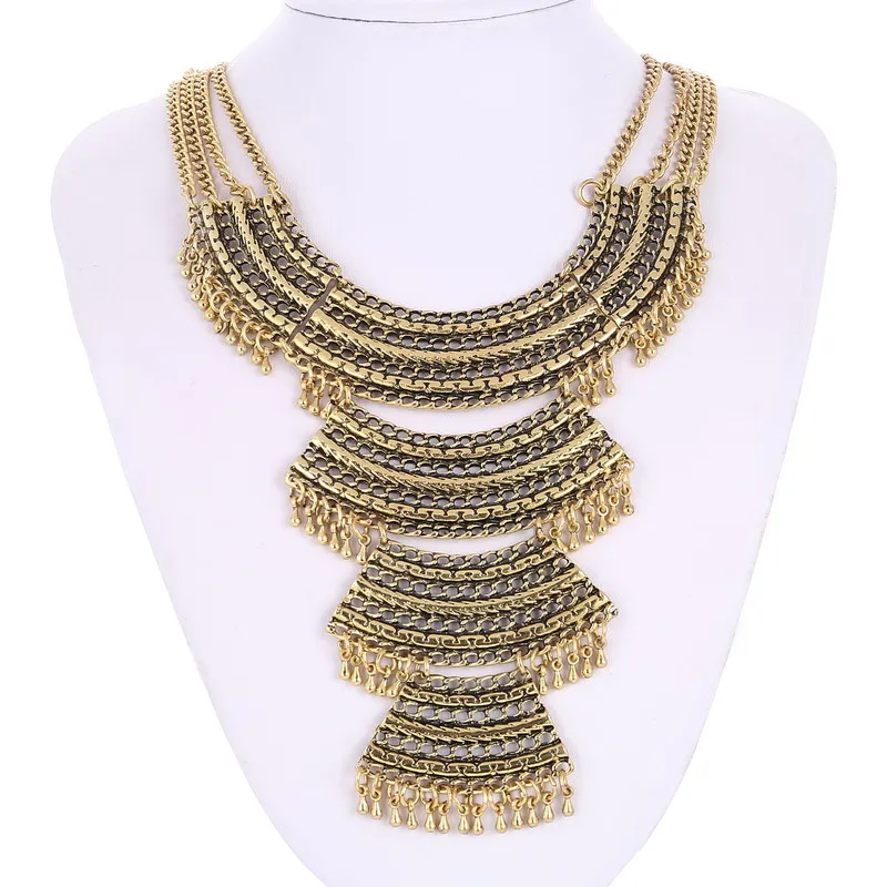 Модное большое массивное ожерелье, многослойное ювелирное изделие для женщин, Висячие бусины, кисточка, винтажное этническое ожерелье в цыганском стиле