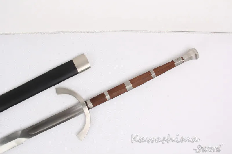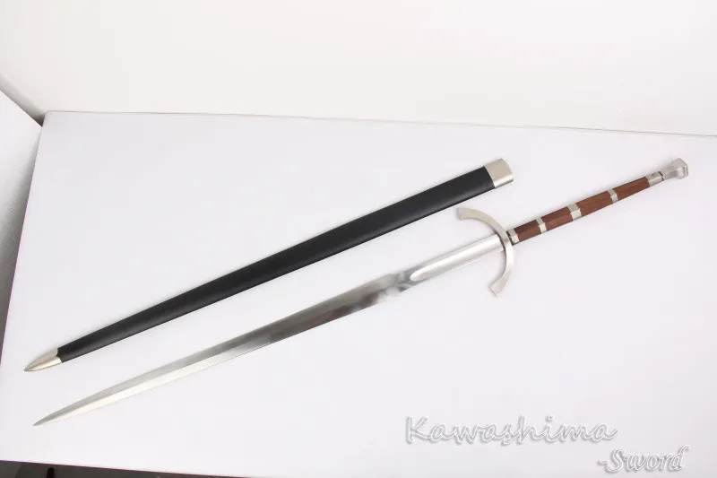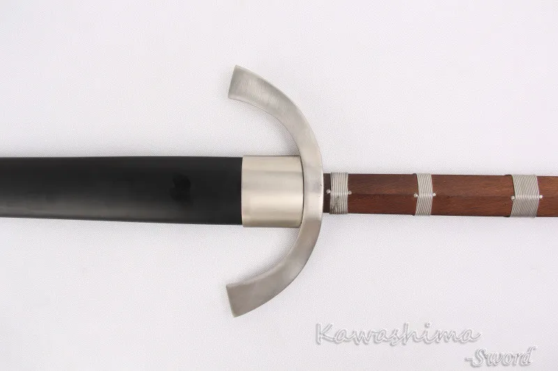 Этот меч изготовлен из 1060 высокоуглеродистой стали. Лезвие отличается термообработкой для получения твердого края для хорошего удержания кромок, сохраняя при этом жесткий меч и делая хорошую мягкость для тренировок. Поставляется с жесткой черной деревянной оболочкой.