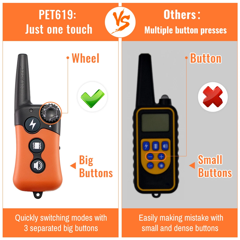 PET619A-2 представляет собой 2 дистанционный тренировочный ошейник для собак, который сочетает в себе множество функций и элементы часто встречается в шок ошейники для собак, но с уменьшенным дизайном приемника для того, чтобы разместить больше различные собак, от 10 фунтов и выше. Этот блок был разработан эргономично с любительским тренером и любого размера собаки. Вы будете в состоянии усилить базовое постижение собак по всему дому, двору или неторопливо прогулок по парку и на расстоянии 800 м, обучение в этих условиях будет ветерком. Благодаря нашей новой технологии быстрой зарядки и возможности зарядки обоих устройств, этот электронный ошейник всегда готов, когда вы находитесь. С 100 уровнями ударов и вибрации, поиск Уровня стимуляции, который работает для вашей собаки является простым и легким и в сочетании со стандартным тоном позволяет вам доставить предупреждение до стимуляции. И, наконец, устройство оснащено дистанционным включением и отключением от пульта дистанционного управления.