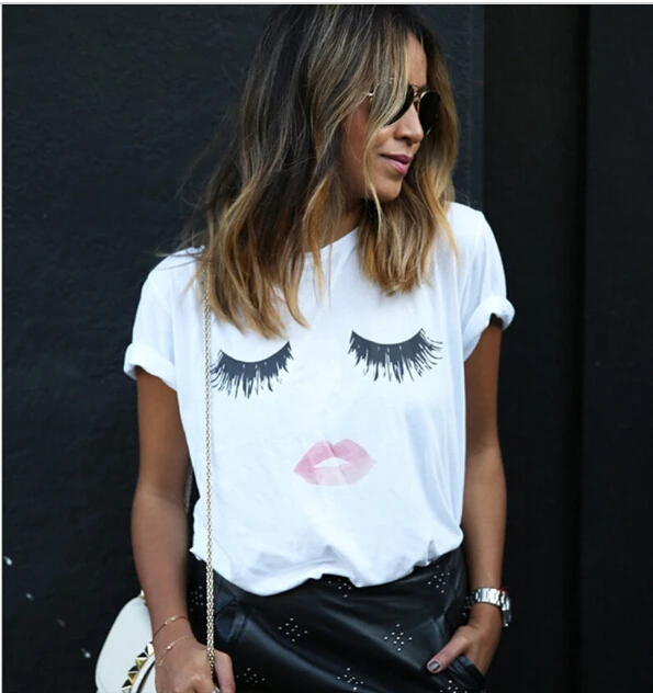 2016 Новый Летний Печати Письма С Коротким Рукавом Футболки Женский Топы Повседневная О-Образным Вырезом Белый Прямо Простой ФутболкиUS $11.90/шт