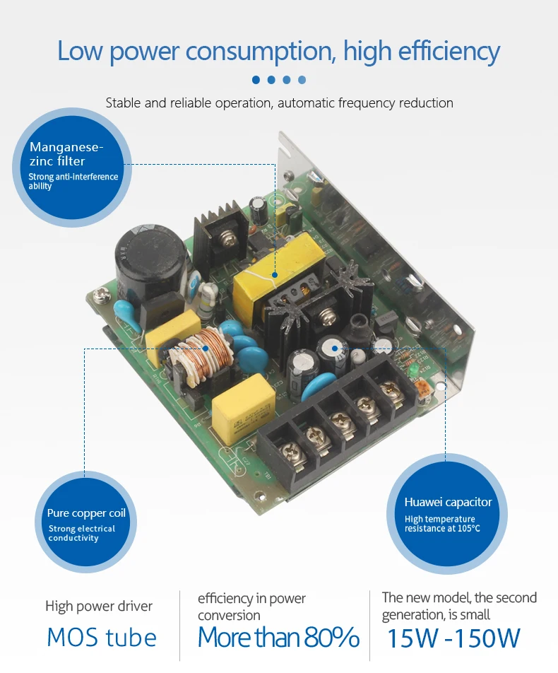 | Voltage Range | 85 ~ 264VAC 120 ~ 370VDC | Frequency Range | 47 ~ 63Hz | Efficiency | 78% | 83% | 84% | 86% | 86% | AC Current | 0.55A/115VAC 0.35A/230VAC | Inrush Current | Cold Start 45A | Leakage Current | <2mA / 240VAC | PROTECTION |