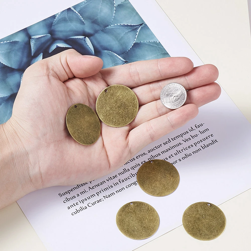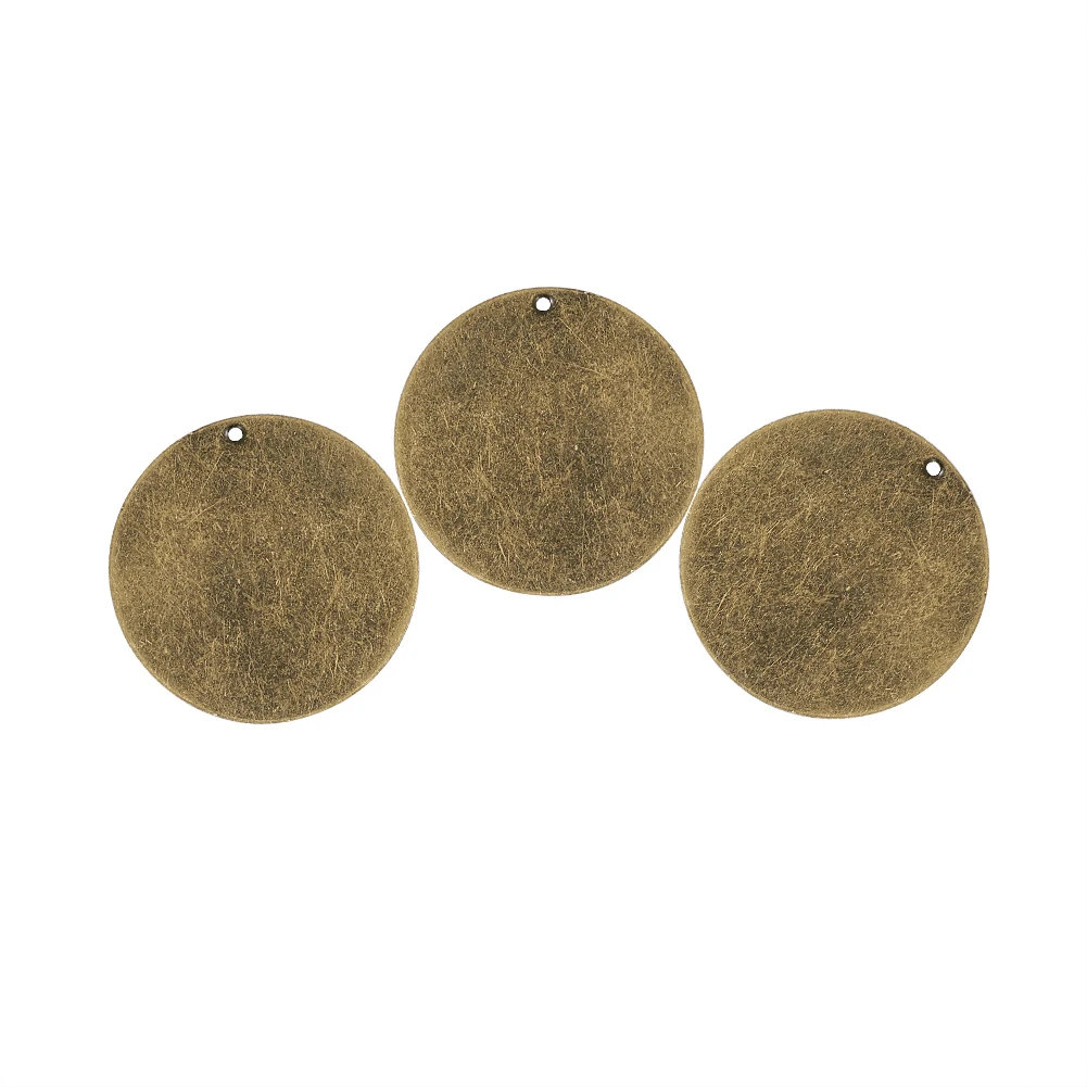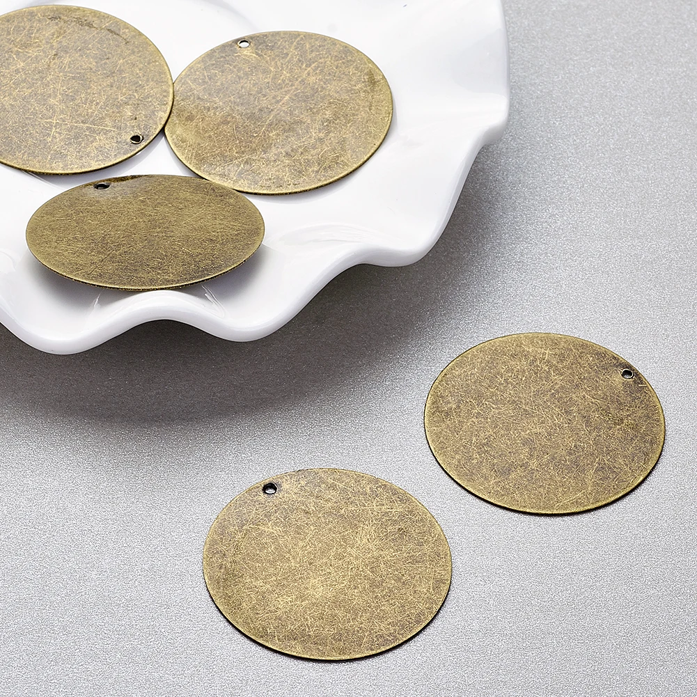 5pcs пустая бирка Подвески латунные подвески для Цепочки и ожерелья ювелирные изделия аксессуары "сделай сам" для изготовления плоские круглые античная бронза 34x0.5mm