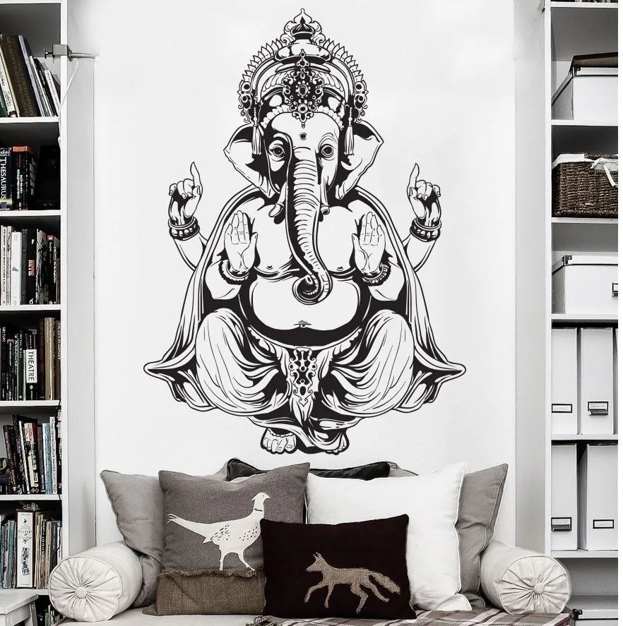 Съемные художественные Настенная Наклейка индийская Ganesha, фотообои с головой слона для украшения стен дома, декоративные настенные наклейки, Y-495US $12,34 /Шт.