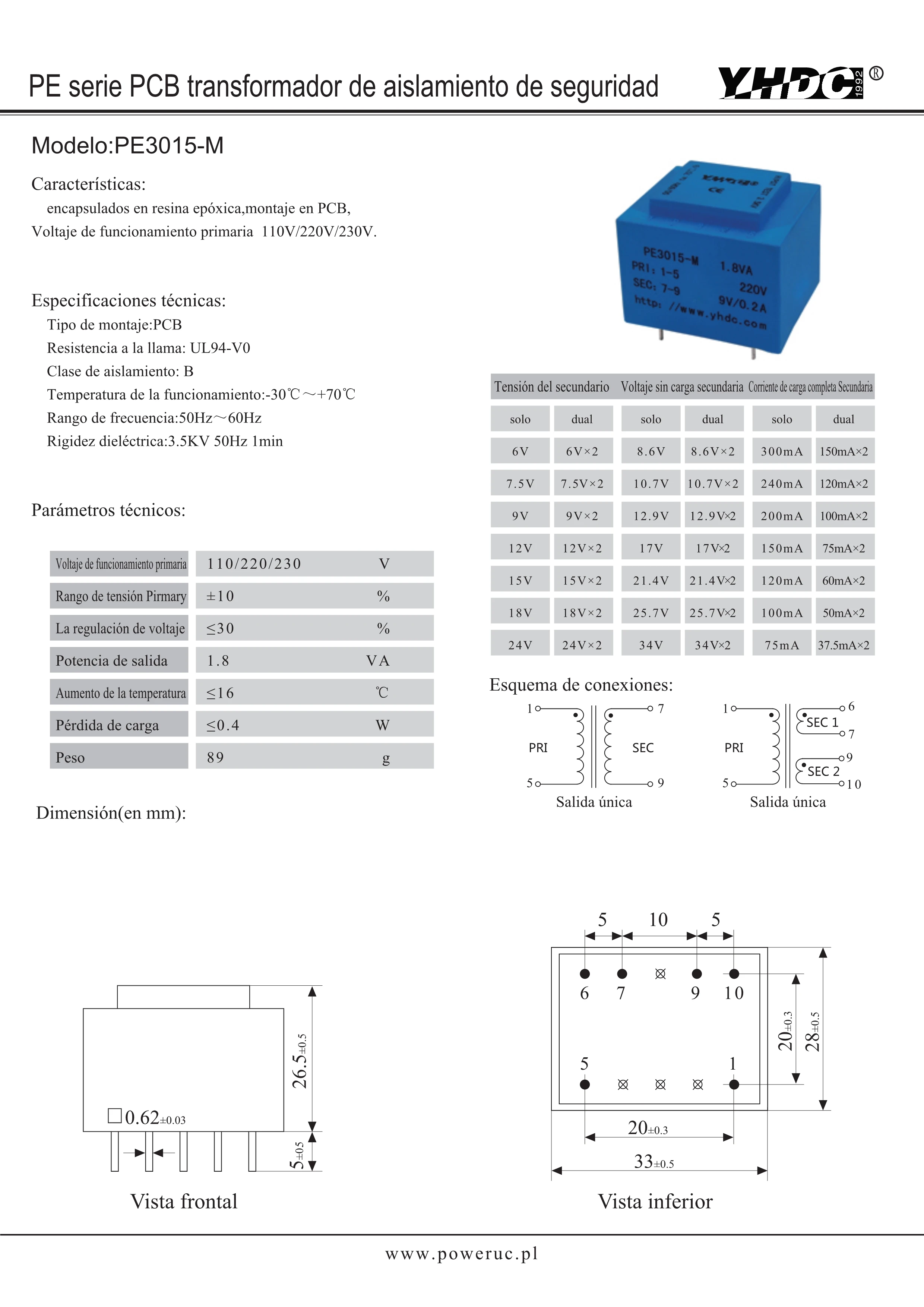 YHDC PE5424K-M мощность 20VA вход 220В выход 7 5 в Инкапсулированный трансформатор PCB