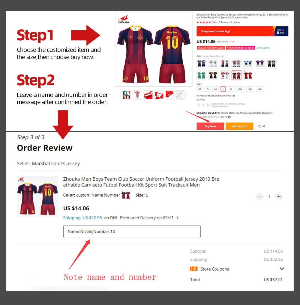 Пожалуйста, укажите имя и номер вашего выбора в примечании с вашим заказом. Конкретная операция выглядит следующим образом, если нет заметки или сообщения, мы вышлем Джерси без имени или номера!