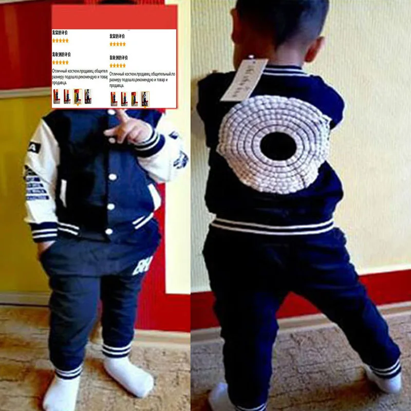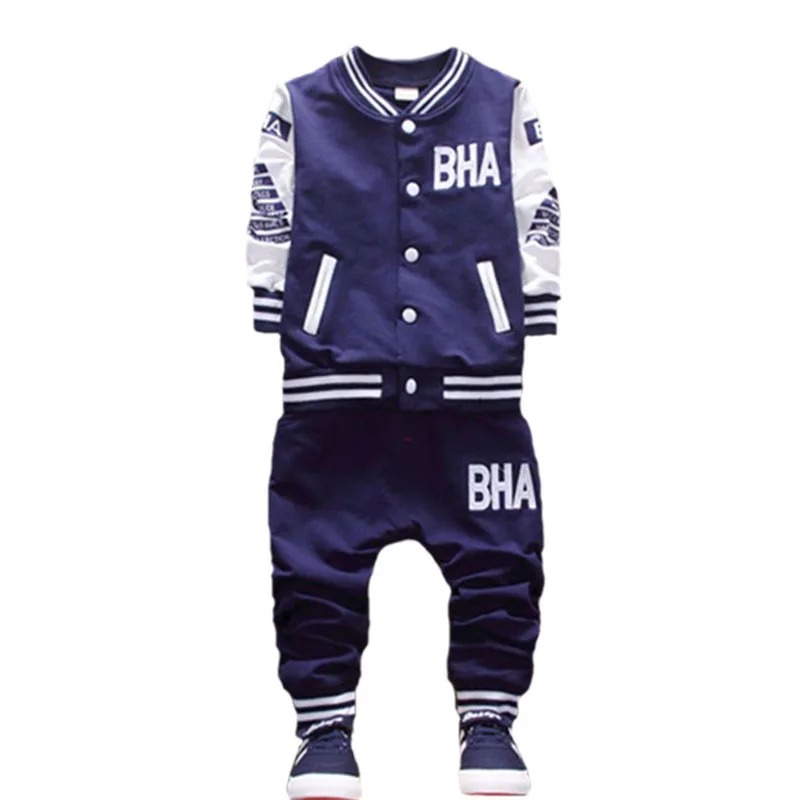 Весенне-осенняя одежда для маленьких мальчиков и девочек, 2 предмета, толстое пальто с вышитыми буквами, куртка + штаны, качественная одежда для детей 2-5 лет