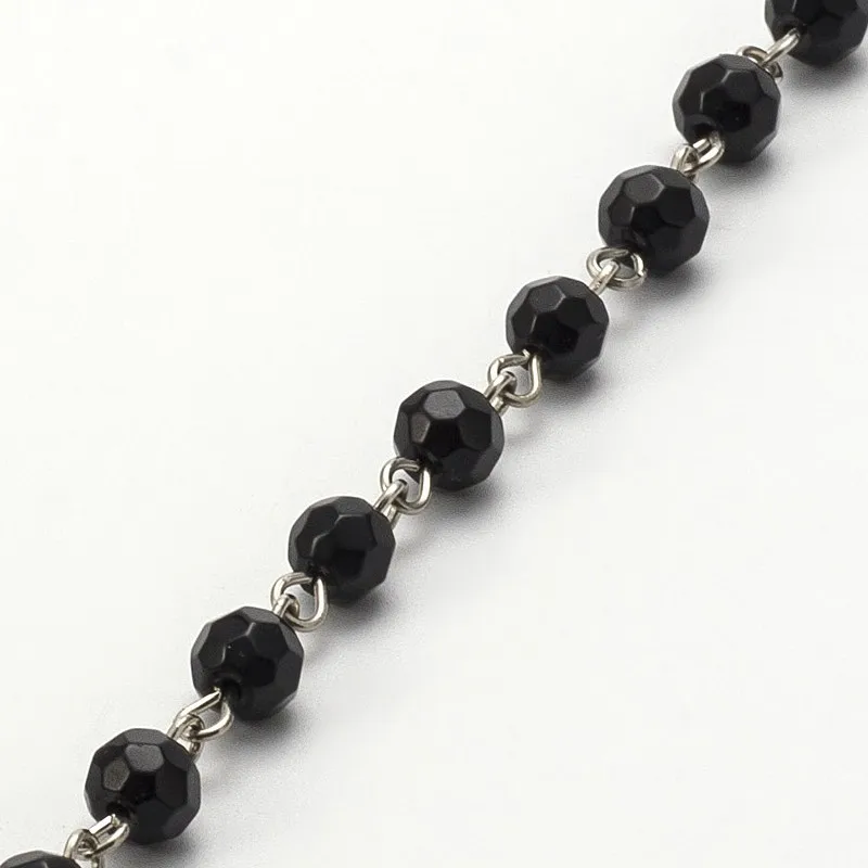 Ограненные круглые стеклянные бусины ручной работы, цепочки для изготовления ожерелий и браслетов, с железными глазками, черные