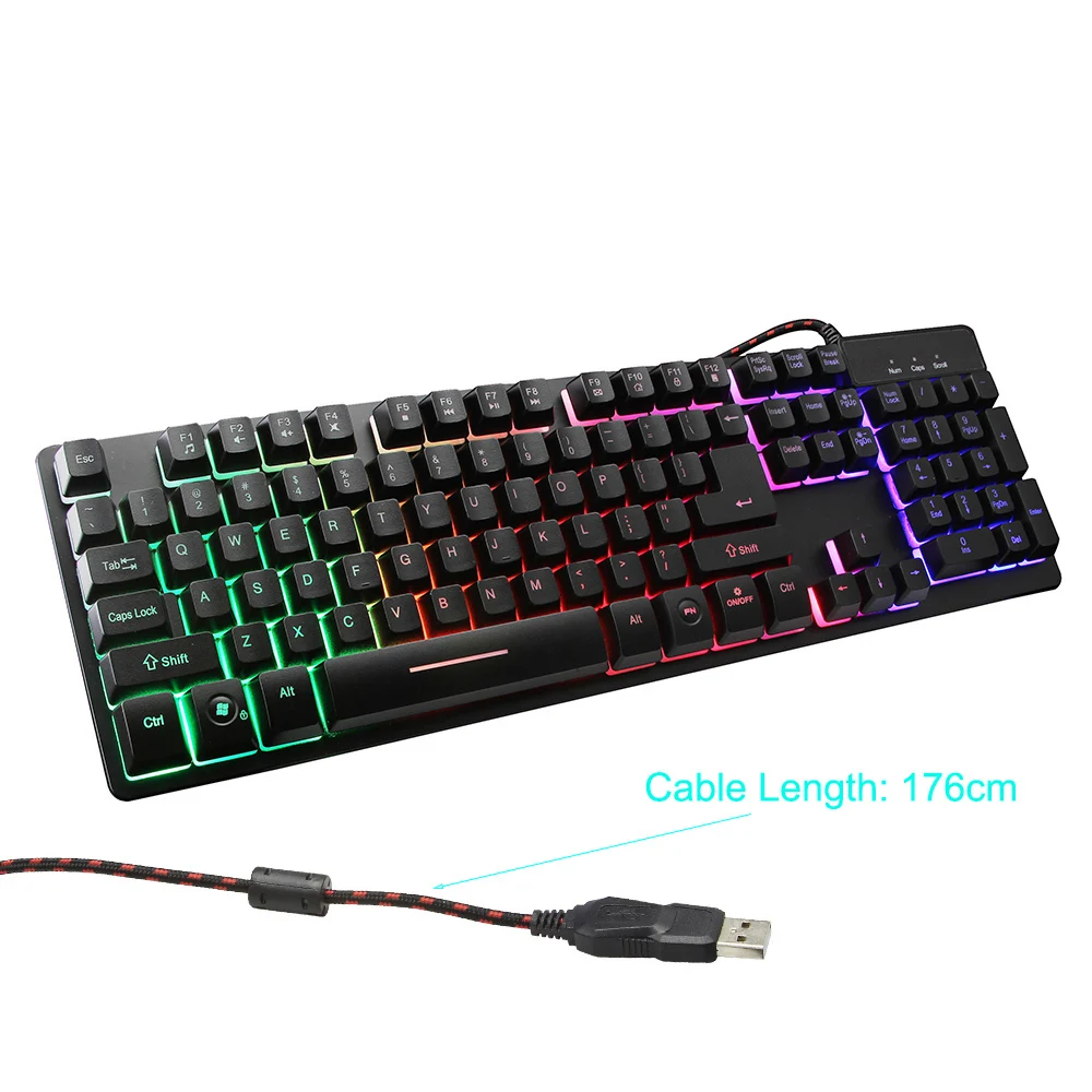 CHYI 104 клавиши Проводная Механическая клавиатура английская раскладка RGB подсветка синий переключатель для геймераОсобенности:1. 100% абсолютно новый и высокого качества с цельной металлической задней крышкой2. Подключи и работай, не нужно устанавливать драйвер, прост в использовании3. Эргономичный дизайн сделан для геймеров, сотрудников и т. Д.4. Гуманизированный дизайн, добавив ряд клавиш функции быстрого доступа.5. Профессиональные 104 клавиши и подсветка6. Использование Профессионального игрового чипа, дает вам идеальный игровой опыт7. Многоцветная подсветка делает его очень удивительной блестящей механической клавиатурой8. Гуманизированный дизайн: Добавьте ряд функциональных клавиш быстрого доступа, сотрудничающих с клавишами FN9. Отлично подходит для машинок, программистов, игр и т. д.10. Поддержка системы: Linux,Mac OS,Windows,Windows 10,Windows 2000,Windows 7,Windows 8,Windows 95,Windows 98,Windows Vista,Windows XPСпецификация:1. Модель: проводная клавиатура CHYI2. Интерфейс: USB3. Способ подключения: проводной4. Ключевая жизнь: 10 миллионов5. Размер изделия: прибл. 445*137*37 мм6. Вес нетто: прибл. 7100 г7. Вес брутто: около 10 г8. Материал: алюминиевый сплав + ABS9. Длина кабеля USB: около 176 см10. Цвет: черный11. Основной срок службы: 5 миллионов штрихов12. Тип: Механическая сенсорная клавиатура13. Рабочая температура: -5-+ 40 C14. Количество клавиш: 104 клавиши15. Применение: для ПК, игр, ввода текстаВнимание:1. Для российских клиентов, пожалуйста, заполните заказ после полного имени, или не можете отправить товар, спасибо за сотрудничество2. Если посылка товара была повреждена, пожалуйста, Отклоните и сделайте фотографии, отправьте нам3. О цвете: Мы фотографируем с помощью цифровой камеры, некоторые цвета чехлов будут иметь некоторые различия из-за технических ограничений, надеюсь, вы понимаетеПосылка включает в себя:1 X Проводная клавиатура![]()