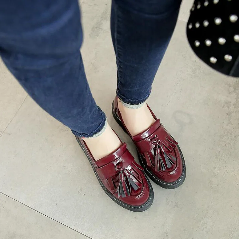 Бренд; обувь с перфорацией типа «броги» с застежками, женские сандалии ярких цветов на платформе женская обувь без каблуков; женские туфли-оксфорды в британском стиле на толстой подошве с бахромой на плоской подошве, повседневная обувь, повседневные женские мокасины, DXM1204