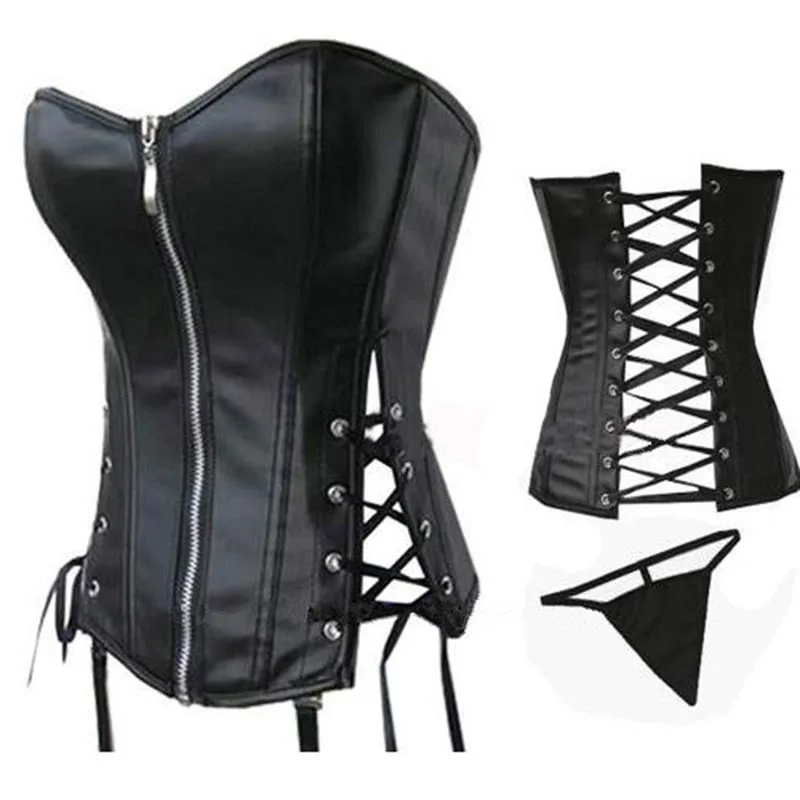 Сексуальный корсет из искусственной кожи на молнии спереди, бюстье с вырезами и юбкой, связывание, фетиш, женское белье, Размеры S до 6XL