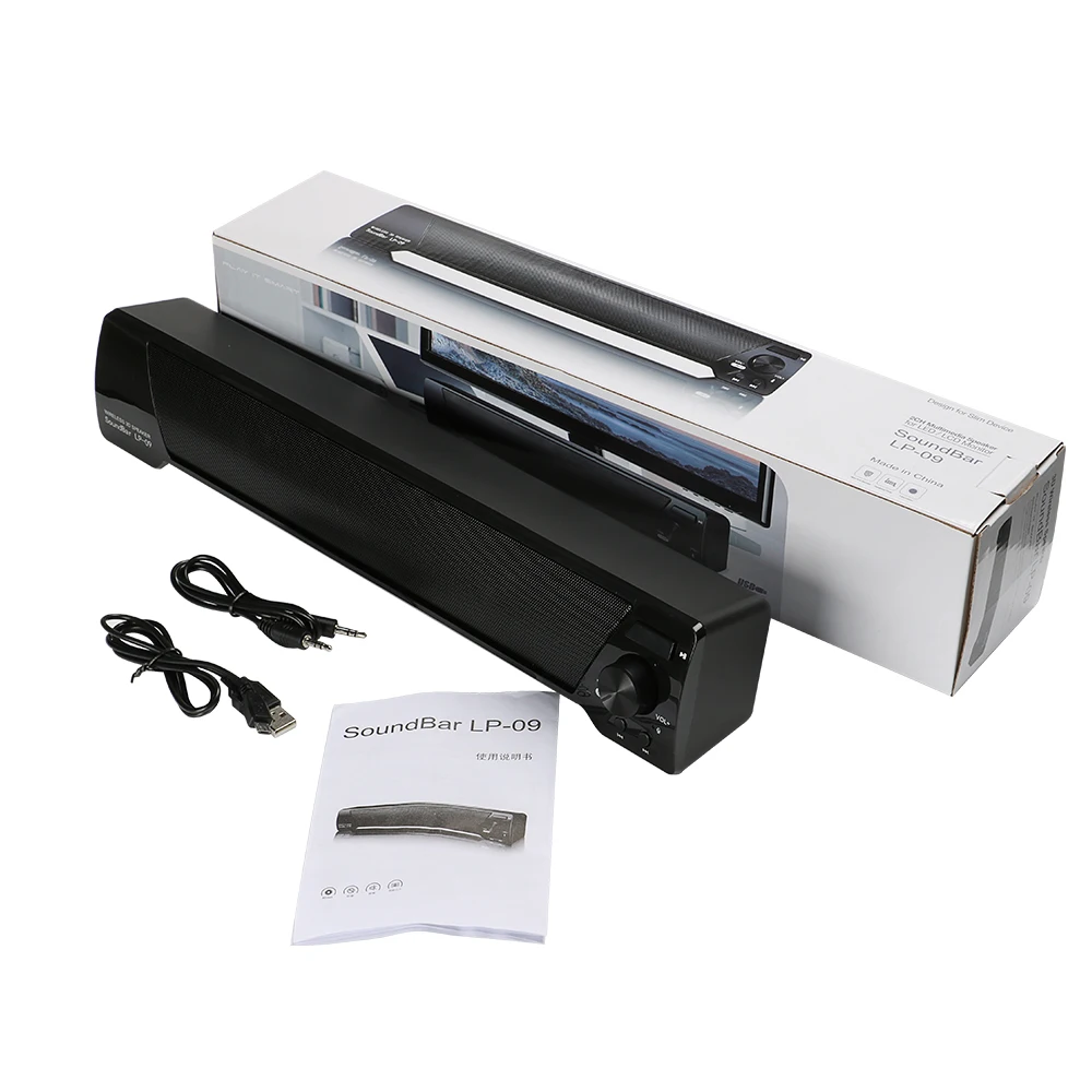 Параметры:Дизайн: многофункциональный, портативныйСовместим с: MP3, TF/Micro SD CardПоддержка: Bluetooth, беспроводные звонки, громкоговоритель, микрофон, регулятор громкостиФункция s: AUX функция, шумоподавление, резонанс, песенки, стереоПодключение: БеспроводнойИнтерфейс: 3,5 мм Audio, Micro USB, микрофон, порт зарядки, слот для карт памяти TFИсточник звука: Bluetooth-устройства, электронные продукты с 3,5 мм штекером, электронные продукты с USB-портом, TF/Micro SD картаМатериал: ABSЦвет: черный, белыйВерсия Bluetooth: V4.2TF карта Extension: 32 г to Max. (в комплект не входят)Расстояние передачи: W/O препятствия 10 мИмпеданс динамика: 4 ОмВыходная мощность: 5 Вт x 2Время ожидания: 8 часовЧастота: 100 Гц-18 кГцЗ/п: 75дБИсточники питания: БатареяНапряжение зарядки: 5 ВРабочее напряжение: 3,7 ВВремя зарядки: 5 часовДлительное время: 6 часовЕмкость батареи: 1500 мАчТип батареи: 18650 литий-ионная батареяНапряжение батареи: 3,7 ВРазмер продукта (Д x Ш x В): 400*73*68 мм