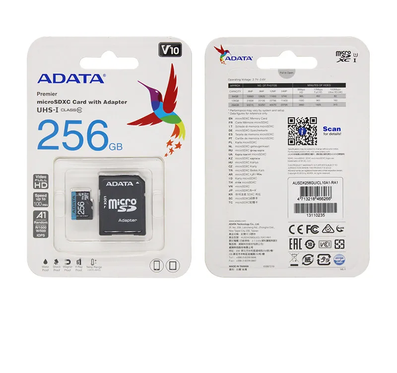 ADATA 256 Гб карта памяти Premier карта microSDXC с адаптером USH-I C10 Micro SD карта TF карта до 98 МБ/с./с флеш-карта для телефона