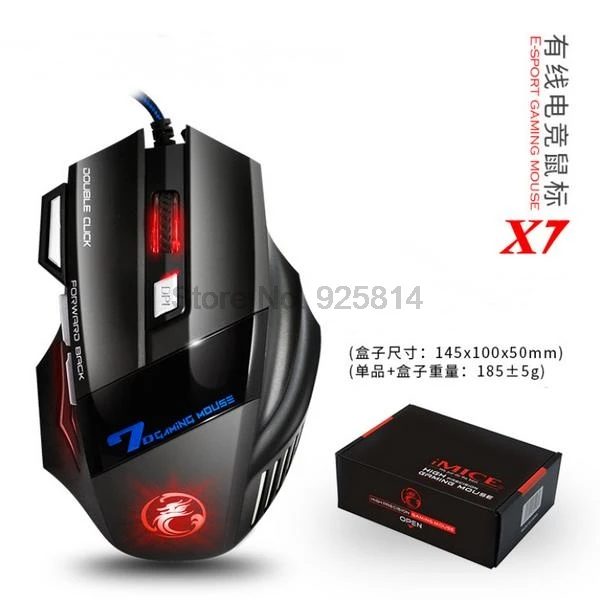 X7 7 Key Optical 7D USB Wired Gaming Mouse Support 3200 DPI LED LightFeatures:● High-end optical engine, precise positioning● 3200DPI is the highest resolution, any free choices from 4 gears DPI ● Unlimited firepower keys to improve game efficiency, comfortable feel makes you playing more whole-heartedly ● With backlight, colorful and cool ● Standard 7 keys: Keys of roller wheel up and roller down can self-defined key function ● Ergonomic design, comfortable hand feeling, reduce fatigue ● Key number: 7 key ● Transmission: Wired ● Key life: 4000000 times ● Resolution: 1000 / 1600 / 2400 / 3200 DPI ● Interface: USB ● Working distance: 1.8 M ● Light: LED colorful breathing light ● Support system: XP / VISTA / WIN7 / WIN8 / MAC / DOS Model: X7 Type: Mouse Features: Novelty, Gaming Material: Plastic Color: Yellow, BlackResolution: 2400DPI, 1600DPI, 3200DPI, 1000DPI Interface: Wired Connection: USB2.0 Operating Voltage: 5V Operation Current: 100mA Power Supply: USB PortCable Length (m): 1.8 m Package weight: 0.288 kg Product Size (L x W x H): 13.0 x 8.5 x 3.5 cm / 5.11 x 3.34 x 1.38 inches Package Size (L x W x H): 22.0 x 16.5 x 5.0 cm / 8.65 x 6.48 x 1.97 inchesPackage Contents: 1 x X7 7 Key Optical 7D USB Wired Gaming Mouse Support 3200 DPI LED Light |