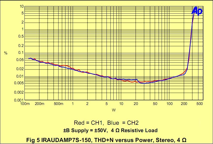 Искажение: 0.007% THD + N @ 60 Вт, 4 R