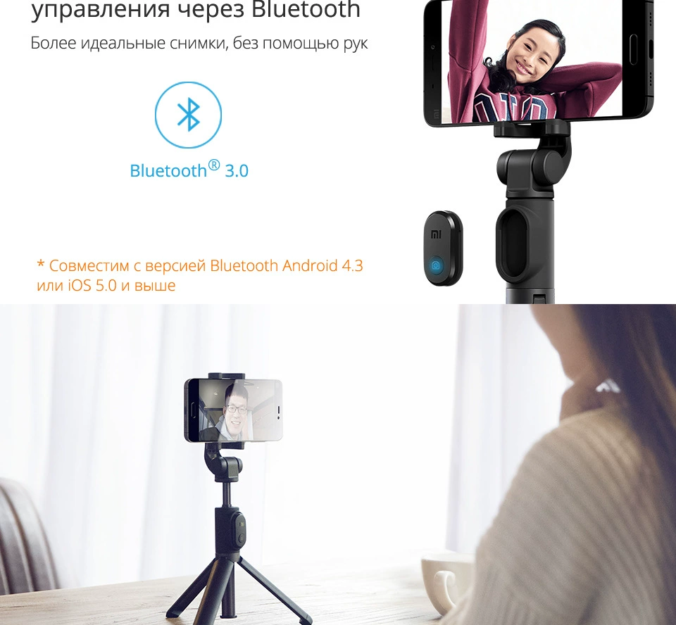 Xiaomi Портативный Мини-Штатив 3 в 1 Автопортрет Монопод Телефон Селфи Палка Bluetooth Пульт Дистанционного Спуска Затвора для iPhone Samsung Gopro описание товара: продукт разработан специально для смартфонов. это портативный селфи поддержка комплект, который может быть использован как мини-штатив, настольный штатив и селфи палкой. кроме того, он может обеспечить стабильную поддержку и беспроводной управления движением для смартфонов. это многофункциональный аксессуар в HD фотографии, видео-съемки, покадровой и длительной экспозиции съемки. совместимый телефон список: для iPhone 7, 7 Плюс для iPhone 6, 6 Плюс для Samsung Galaxy S6, S6 Край, S5, S4, Galaxy Note для LG G4, G3 или любой смартфон до 3.4 " широкоформатный основные характеристики: -мульти-угол съемки с 90 градусов вертикальной съемки -совместимость с смартфонов и камеры GoPro (iOS 5.0 и выше, Android 4.3 и выше) -настольный штатив, земля верхняя и штатив селфи stick функции высота регулируется от 180 мм до 420 мм -Bluetooth спуска затвора -Bluetooth версия: 3.0 -диапазон: 10 м что в коробке: 1 * селфи палочка & штатив, 2 в 1 1 * в Китайском руководстве 1 * Контроллер Bluetooth