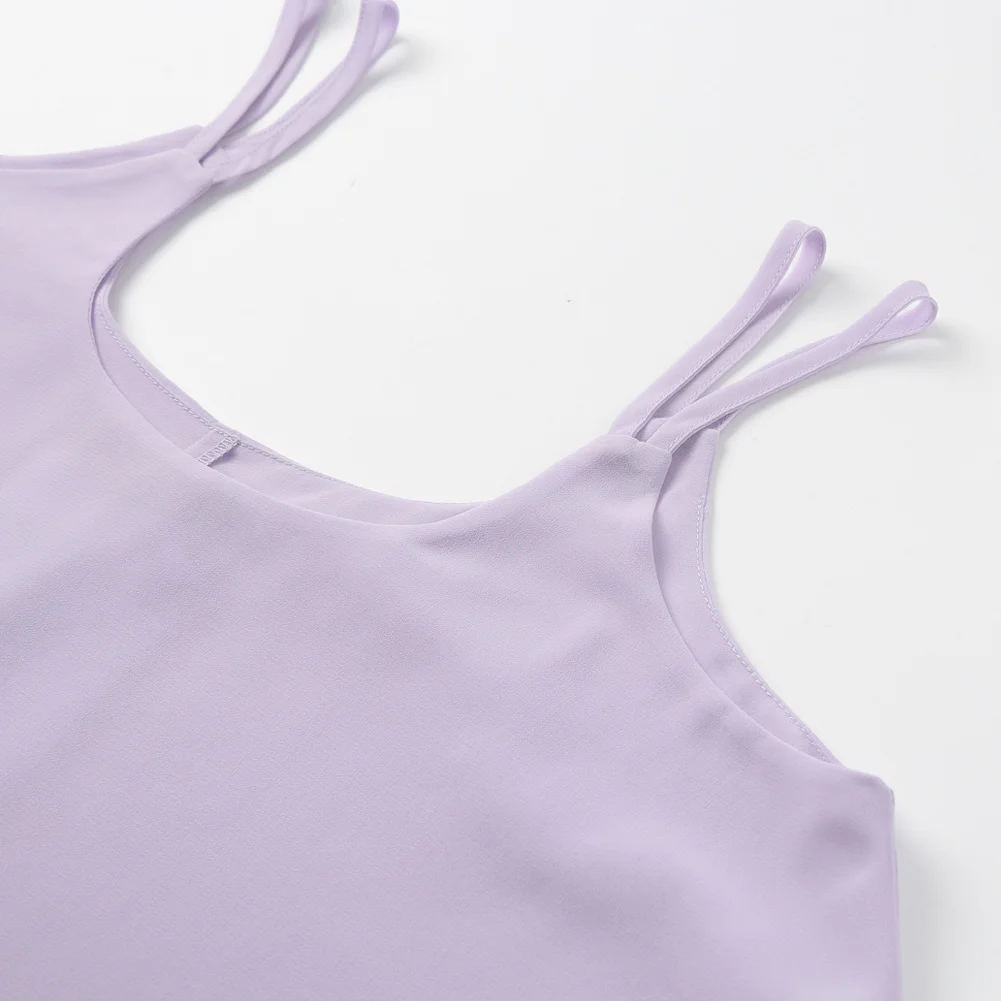 Chiffon top is always needed to match the hot pants, skirts or jeans in summer. Featured in dual spaghetti strap, double layer, plunge neck, draped hem, this chiffon vest matches most of your clothes with no effort and brings you a chic and cool summer look.