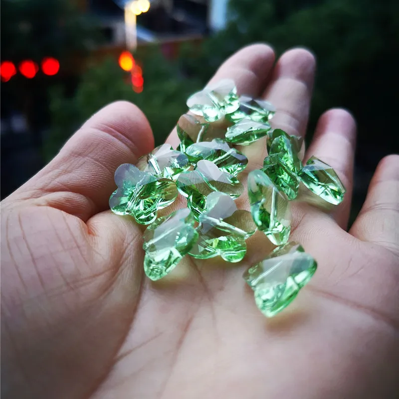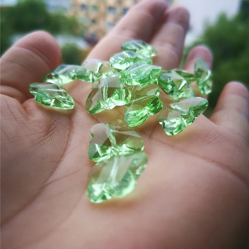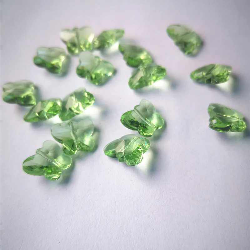 Top Quality 100pcs/lot 14mm Light Green Crystal Faceted Butterfly Beads 1 Hole for Chandelier Stones Diy Garland Strands Decor