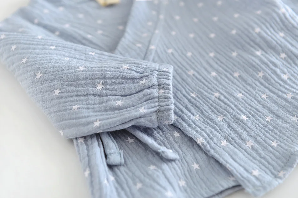 Мягкие газовые комплекты одежды для малышей хлопковая одежда с принтом для девочек костюмы из 2 предметов в горошек со звездами для мальчиков корейский дизайн для новорожденных