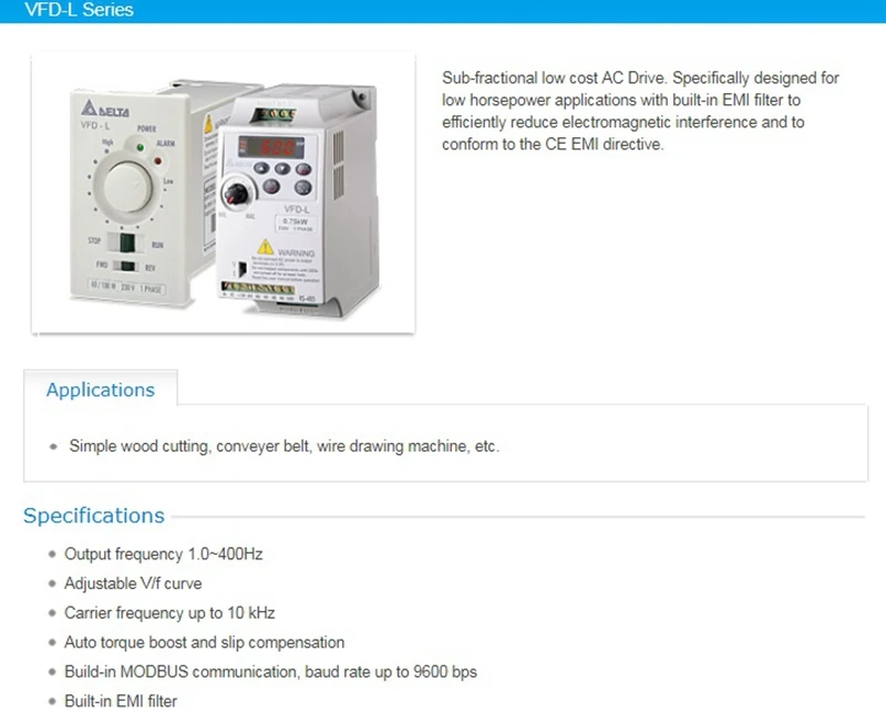 Мы поставляем товары VFD-L серии следующим образом, при необходимости, пожалуйста, не стесняйтесь обращаться к нам.