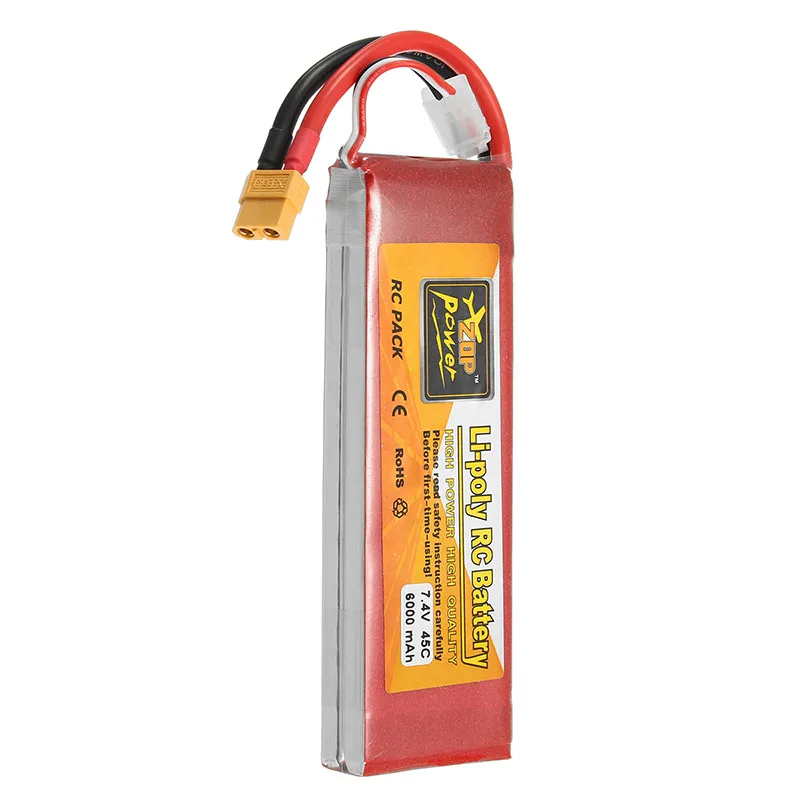 Бренд аккумулятора: ZOP power Ёмкость: 6000 мА-ч Размер: 14*70*148Мм Непрерывный разряд скорость передачи данных: 45C Вес: около 325 г Примечание: Из-за разницы между измерениями размеры батареи и вес могут иметь небольшую погрешность. Внимание: Не заряжайте и не перегружайте аккумуляторы. Не ставьте его рядом с высокой температурой. Не бросайте его в огонь. Не бросайте в воду. Посылка включает в себя: 1 х ZOP power 7,4 V 6000 mAh 45C 2 S Lipo батарея