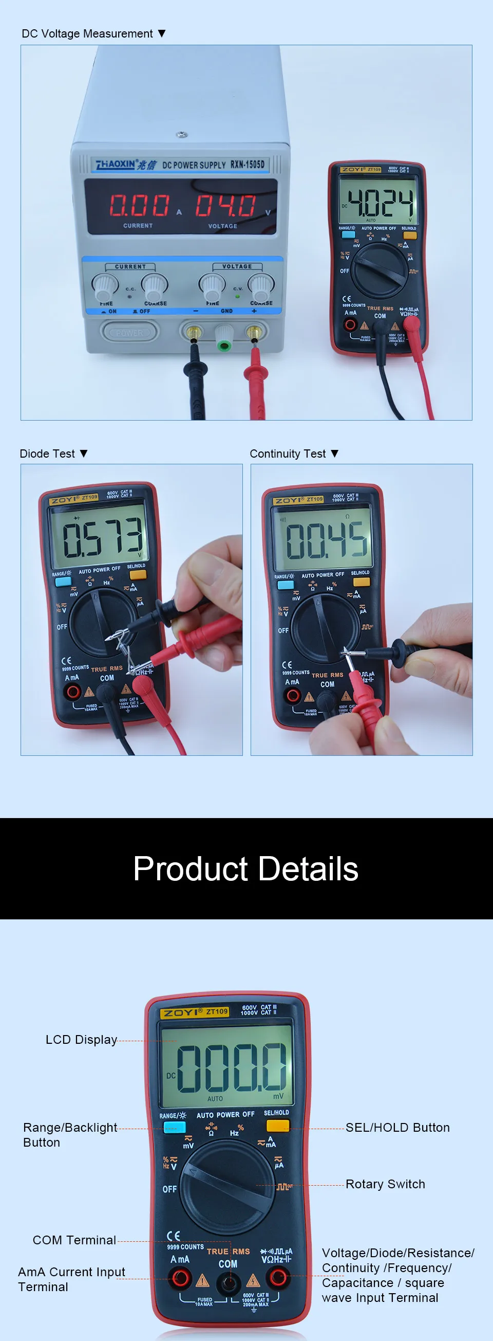 Новое поступление, ручной мультиметр ZOYI ZT109, 9999 расчетов светодиодный светодиодная подсветка, большой ЖК-дисплей, электрическая тестовая диагностическая машина