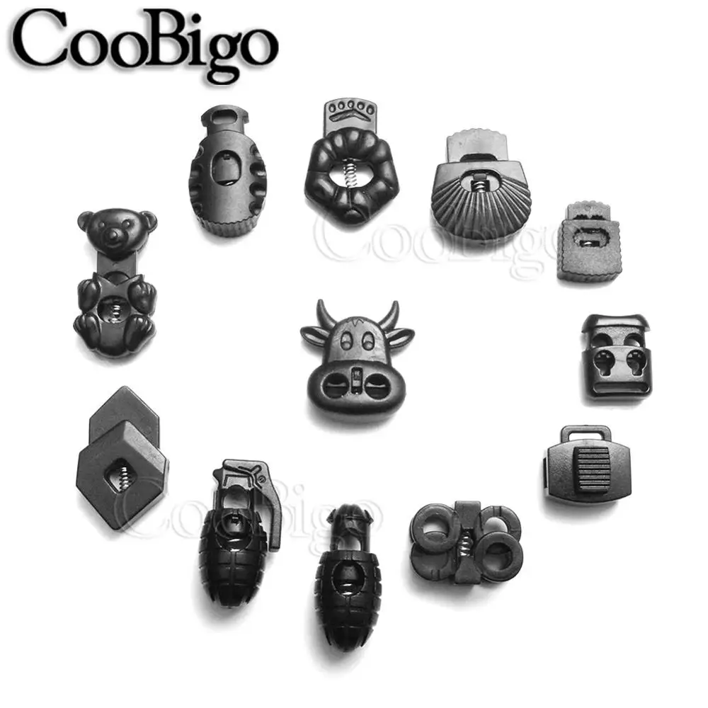 10 шт. Блокировка шнура пластиковый фиксатор конец шнура тумблер зажим Пряжка черный и белый Паракорд...