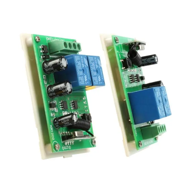 Данный продукт включает в себя две небольшие гаджеты, включая пульт дистанционного управления и модуль дистанционного управления реле управления, который представляет собой всю передающую и приемную систему дистанционного управления. И поставляется с сверхсильной функцией и приносит вам большое удобство в вашей повседневной жизни. Он поддерживает дистанционно и беспроводную управляемость вашей гаражной двери, электронных ворот, электрические приборы и другое оборудование telecommand в пределах 50 м (свободное пространство). Привнося вам новый опыт дистанционного управления, вы не можете пропустить его.