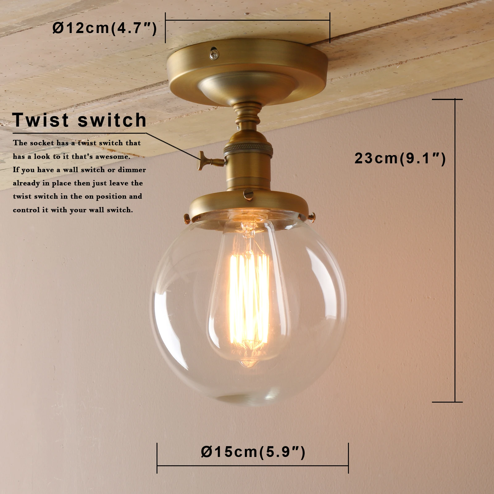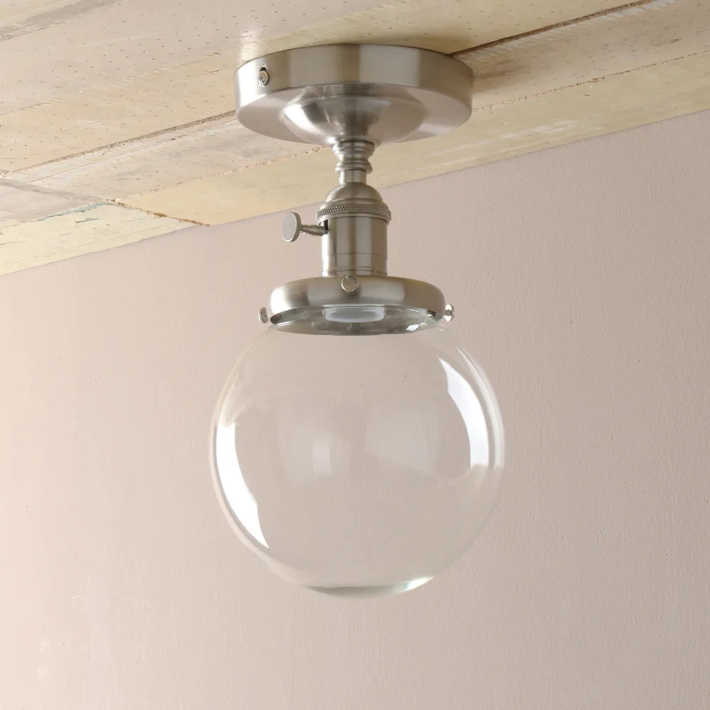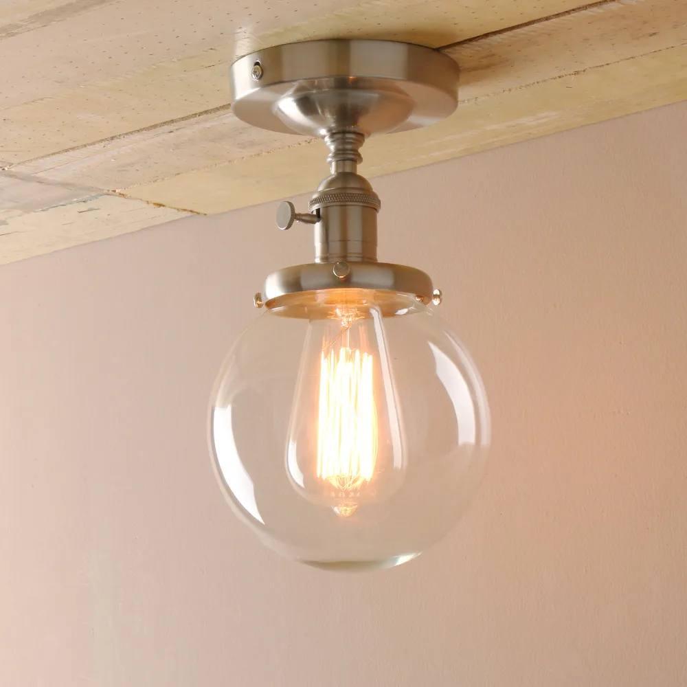 • Стиль: потолочный светильник • Материал: металл + стекло • Отделка: хром, черный, матовый, античный • Потолочного светильника: 15 см (5,9 дюймов) диам * 23 см (9,1 дюймов) H • Измерение Монтажная пластина основания: диаметр 12 см (4,7 ") • Монтажная пластина: с той же цветной монтажной пластиной, что и держатель лампы (круглая) • Проводка: жесткий провод к потолку (требуется установка) • Оттенок: выдувается вручную, оттенок может иметь слегка неровную форму колокольчика, а стекло может содержать небольшие пузырьки, пожалуйста, поймите • Характеристики гнезда: средняя Цоколь E27 (стандартный Размер) • Доступное напряжение 110-220 В. • Лампа: лампа в комплект не входит • Мощность лампы: 60 макс. мощность для использования с этим креплением. Рекомендуется 40 ваттов • Совместимый тип лампы: светодиод; Компактная флуоресцентная лампа (CFL); Галогенная лампа; Лампа накаливания. • Потолочный дизайн, совместимый с большинством восьмиугольных, круглых или квадратных распределительных коробок. Вы также можете установить приспособление как настенный светильник-бра. • Переключатель вкл./выкл. На розетке. Если у вас уже есть настенный выключатель или диммер, просто держите поворотный переключатель в положении on и используйте настенный переключатель для управления им. • Пермо стеклянные потолочные светильники сочетает в себе стили ретро и современный. Идеально подходит для кухни, над прилавком и островом, прихожей и ванной комнаты и т. д. обеспечивает классическое освещение для современного декора и фермерского дома.