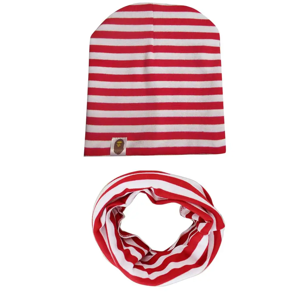 Унисекс; Для маленьких детей; Для малышей; Хлопковая вязаная шапка в полоску; Шарф