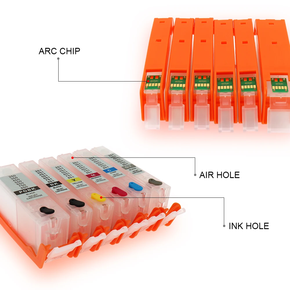 1 х PGI250 PGBK пустой многоразовый картридж с чипом arc1 x пустой многоразовый чернильный картридж CLI251 BK с чипом arc