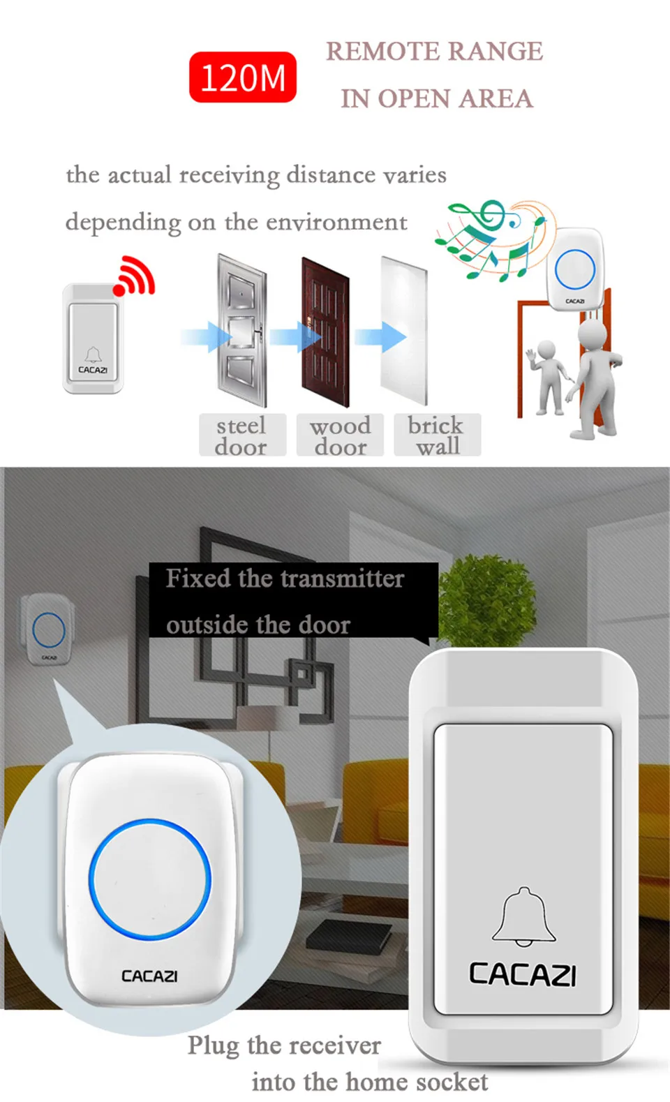 Если вы получаете дверной звонок, приемник не будет звенеть после нажатия передатчика, не волнуйтесь, просто пересоедините их, чтобы работать правильно. Метод сопряжения: Вставьте приемник в блок питания, нажмите кнопку громкости около 4 секунд, нажмите передатчик один раз, затем сопряжение успешно.