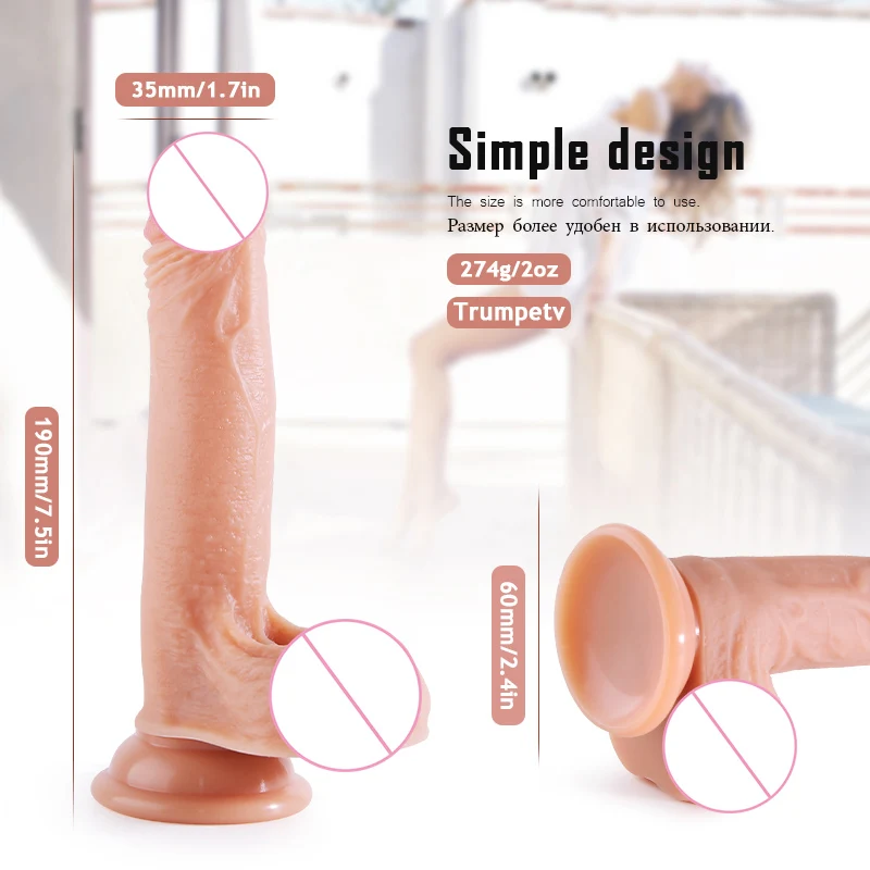 1.100% жидкий силиконовый материал, без запаха. 2. Очень мягкий и реалистичный дизайн 3. Крепкая присоска, свободные руки. 4. Размер продукта: Маленький L190 мм * D35 мм; 274 г Большой размер: д220 мм * д45 мм; 398 г 5. Водонепроницаемая оригинальная цветная упаковка. 7. Для защиты вашей конфиденциальности, мы обещаем отправить ваши продукты в секретном состоянии, упаковка будет коробка и черный пластиковый пакет без каких-либо фотографий и слов о сексе.