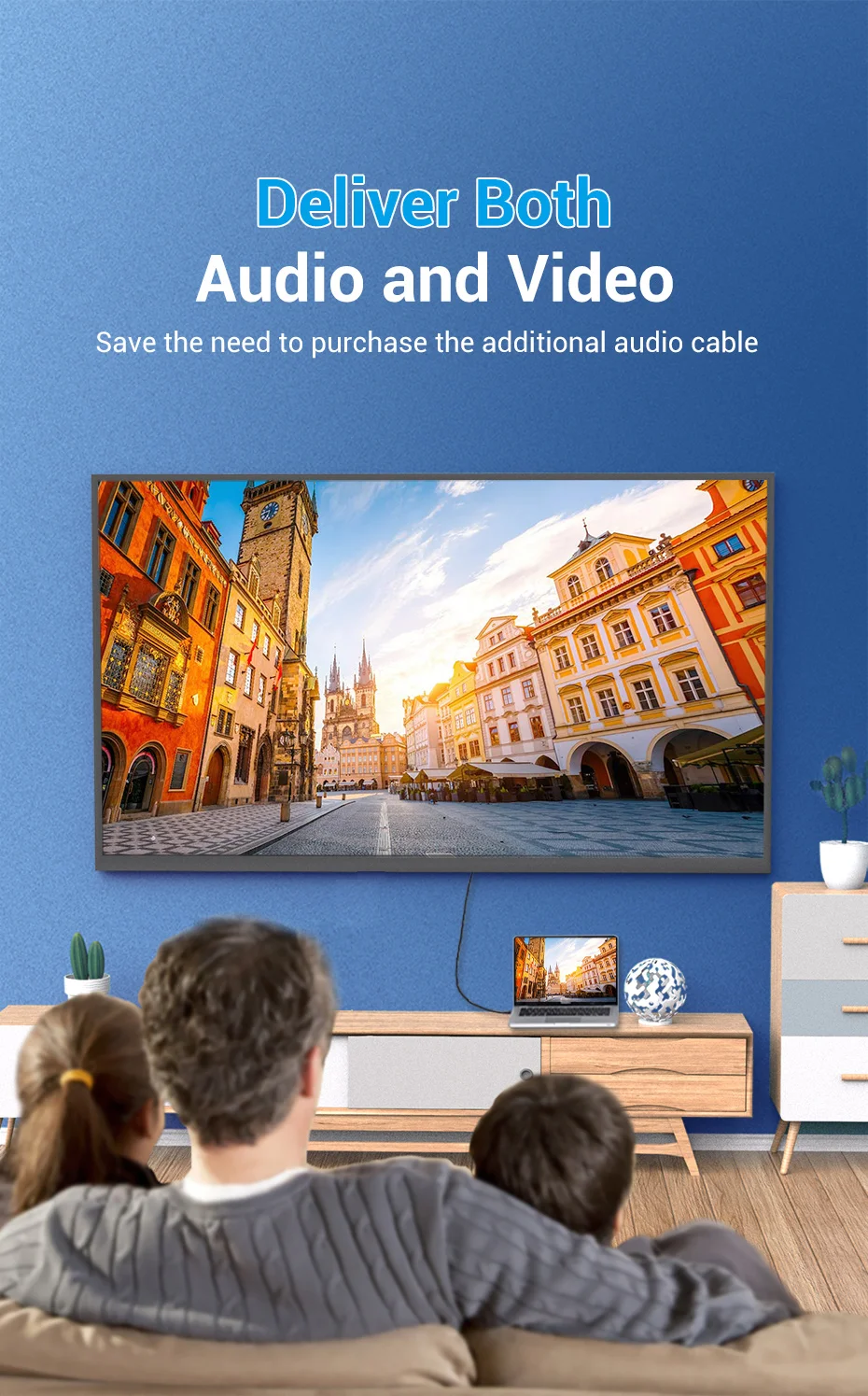 This Flexible Length Mini DisplayPort to HDMI Cable allows you to connect laptops with Mini DP ports to external displays/TVs/Projectors, which works beautifully whether you are planning to give presentations, or watch 1080P HD videos with your laptop on a bigger screen.