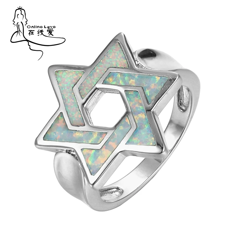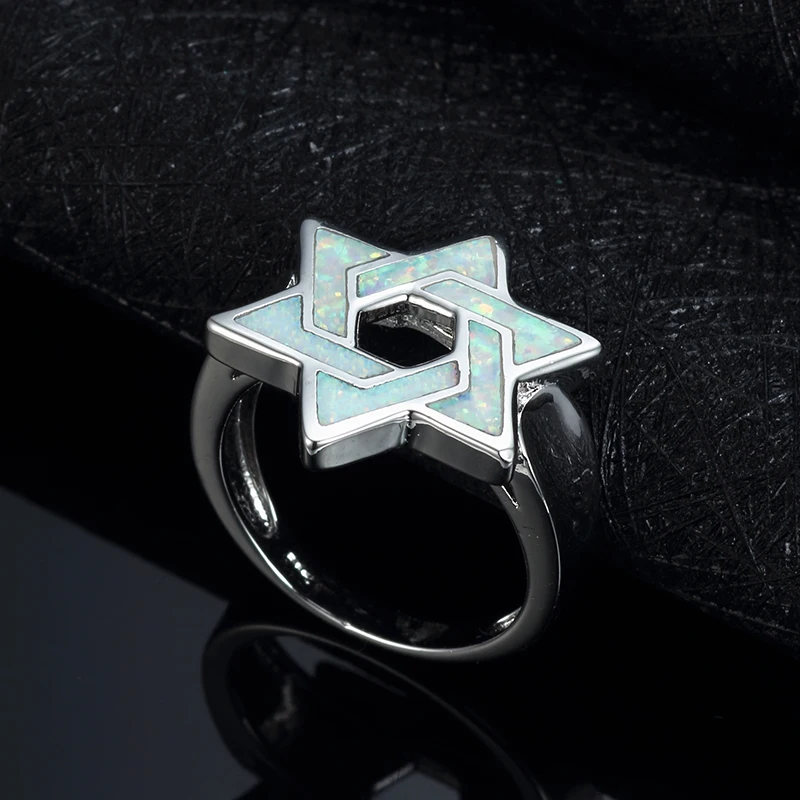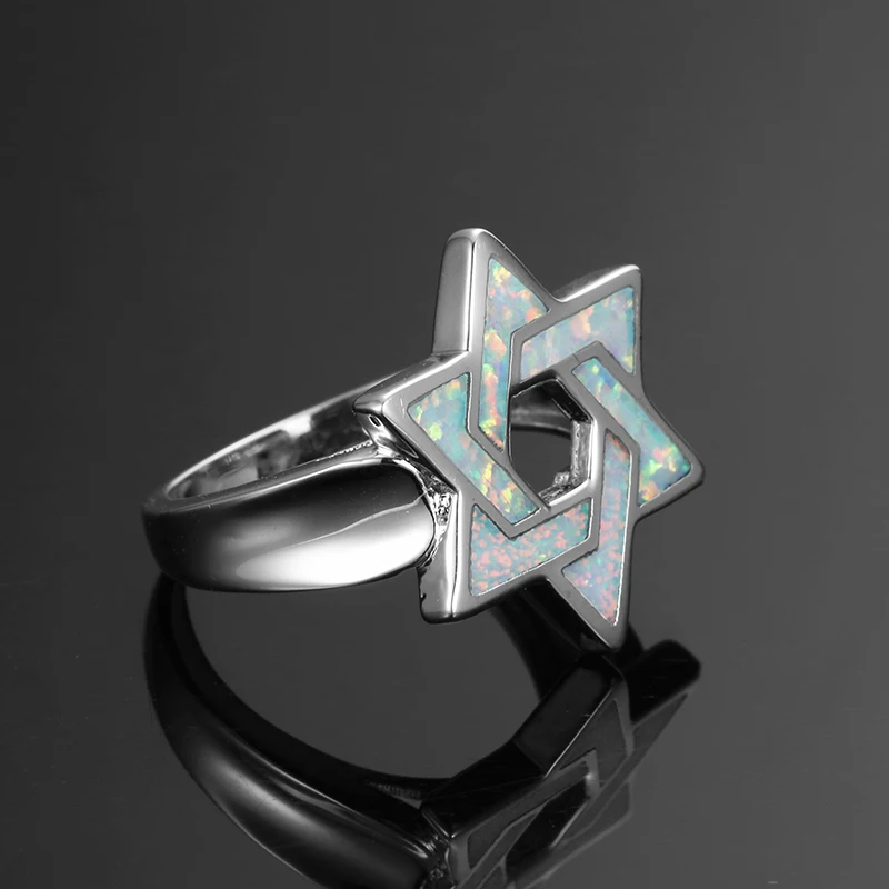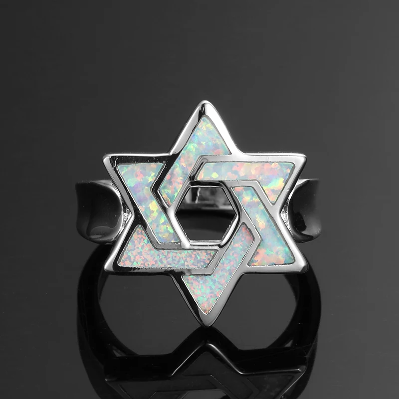 Звезда кольцо в стиле панк израильские, еврейские мужские ювелирные изделия, белый опал религия в винтажном стиле; Модные R196