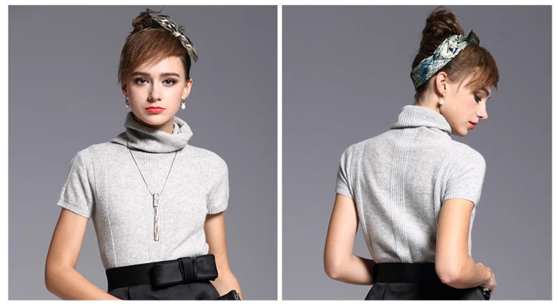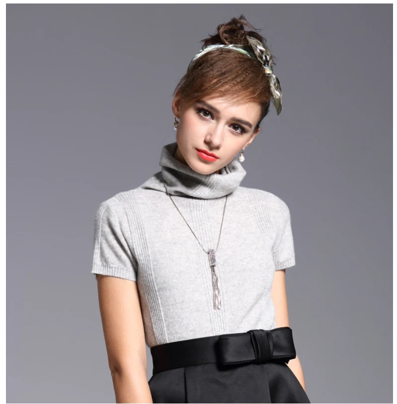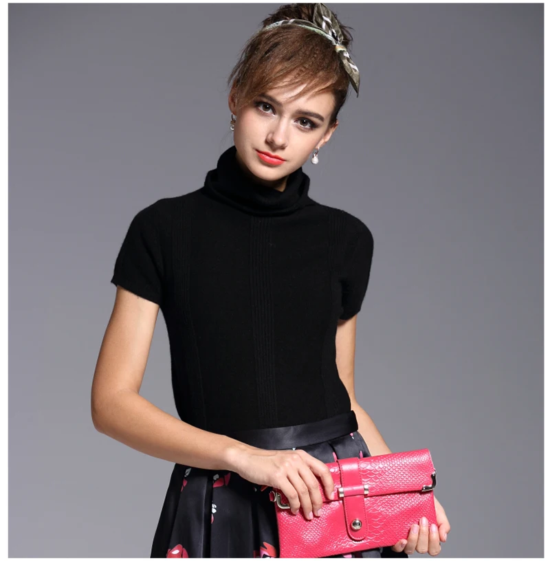 XIKOI Женская водолазка с коротким рукавом, теплый черный зимний осенний натуральный 100% кашемировый вязаный свитер, женская рубашка высокого качества