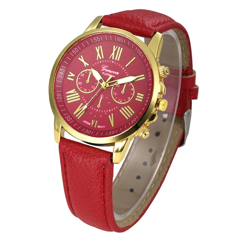 Новые женские модные Женева римские цифры искусственная кожа аналоговые кварцевые наручные часы