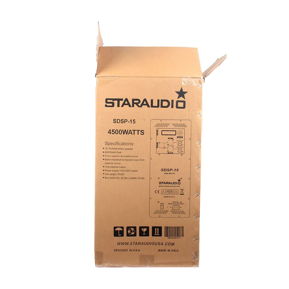 STARAUDIO STARAUDIO Профессиональный 4500 Вт 15 "4 Ом мощный активный DSP этап PA DJ KTV караоке аудио динамик Характеристики:SDSP-15Системы: 2-полосная полный диапазонНЧ-динамик: 2-полосная полный диапазонТвитер: 44 мм Ti.Diap. ДрайверПиковая мощность: 4500 ВтЧастотный диапазон: 40 Гц ~ 18 кГцЧувствительность: 98 дБ (+/-2 дБ)Разъем: XLR/RCAВходной уровень микрофона: <5мвЛинейный вход/выходной уровень: 250 мВFlyable и подставка монтируемаяВес шкафа: 45 фунтовРазмер коробки: 29,72 "H x 19,88" W x 16,53 "D Инструкции:Не перегружайте коробку, чтобы избежать повреждения динамиков.Не ставьте открытый огонь (свечи и т. Д.) сверху или рядом с коробкой-пожарная опасность подключается только к заземленной сетевой розетке 110 В/50 Гц.Только для использования в помещении. Если коробка используется на открытом воздухе, вы должны убедиться, что нет влажности может войти в коробку, когда не используется, отсоедините устройство от сетиОтключите устройство от сети до проверки или замены предохранителя. Убедитесь, что коробка находится на устойчивой, прочной поверхности.Коробки можно повесить, использовать только прочный и утвержденный монтажный материал. Во время монтажа убедитесь, что никто не стоит ниже монтажной зоны.Не кладите жидкости на коробку и не Защищайте ее от влажности. Влажность может значительно сократить срок службы товара.Используйте только подходящие транспортные средства, если вы хотите перемещать коробку-Остерегайтесь своей спины!Всегда отключайте устройство во время грозы, когда он не используется.Если устройство не было использовано в течение длительного периода времени, конденсация может возникнуть внутри корпуса. Пожалуйста, дайте устройству достичь комнатной температуры перед использованием.Никогда не пытайтесь самостоятельно отремонтировать устройство, оно не содержит и пользовательских исправных частей. Запускать сетевой свинец таким образом, что никто не может упасть через него и ничто не может быть помещено в него.Установите Устройство на самый низкий объем до включения. Держите устройство в недоступном для детей месте.Инструкция по эксплуатации 6 модулей DSP РежимВ состоянии главного интерфейса, поверните круглый многофункциональный ключ влево или вправо, курсор будет перемещен в режим, и нажмите многофункциональную клавишу, войдите в меню junior, вы можете сделать выбор из 4 модулей, музыка, жизнь, речь, клуб. Подтвердите один модуль, который вам нужен после нажатия многофункциональной кнопки. ЭквалайзерВ состоянии главного меню, поверните круглый многофункциональный ключ и переместите курсор в эквалайзер, войдите в меню junior после нажатия многофункциональной кнопки, увеличивая или уменьшая громкость от басов или высоких частот, поверните круглый многофункциональный ключ, затем курсор переместится на бас и выберите его, Поверните круглый многофункциональный ключ влево или вправо для увеличения или уменьшения громкости, подтвердите его после нажатия многофункциональной кнопки. Так же, как и тройной режим, после окончания настройки, затем переместите курсор для выхода и обратно в главное меню после нажатия многофункциональной кнопки. POSITВ состоянии главного меню, поверните круглую многофункциональную левую и правую часть, курсор будет перемещаться в POSIT, и Войдите в меню младшей группы после нажатия многофункциональной кнопки, выберите одну из них из 