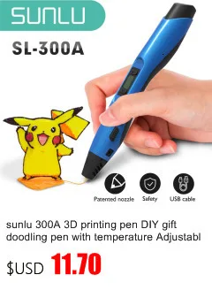 SUNLU SL-300A 3d pen Original Manufacturer Intelligent safety Temperature 3D Printing Pen with ABS/PLA/PCL Filament Toy Gift Characteristics of Intelligent 3D Pen SL-300A: 1.Supports PLA/ABS/PCL 3D filaments, low temperature and common temperature are adjustable; product Description