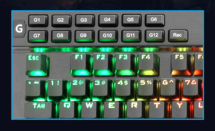 RGB в общей сложности 18 режимов подсветки, 8 различных цветов, 5 уровней яркости подсветки, скорость дыхания и 6 выделенных клавиш для программы определенного пользователем подсветки.